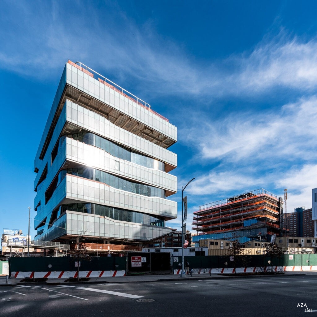 Challenges The School’s new facilities on the Manhattanville Campus have 136,000 Sq Ft of fully custom unitized curtain walls and 25,000 Sq Ft of stick built system. At ground floor curtain walls with glass fins – spanning up to 36′ (one piece) with a makeup based on 3 piles of low iron laminated glass with SGP.