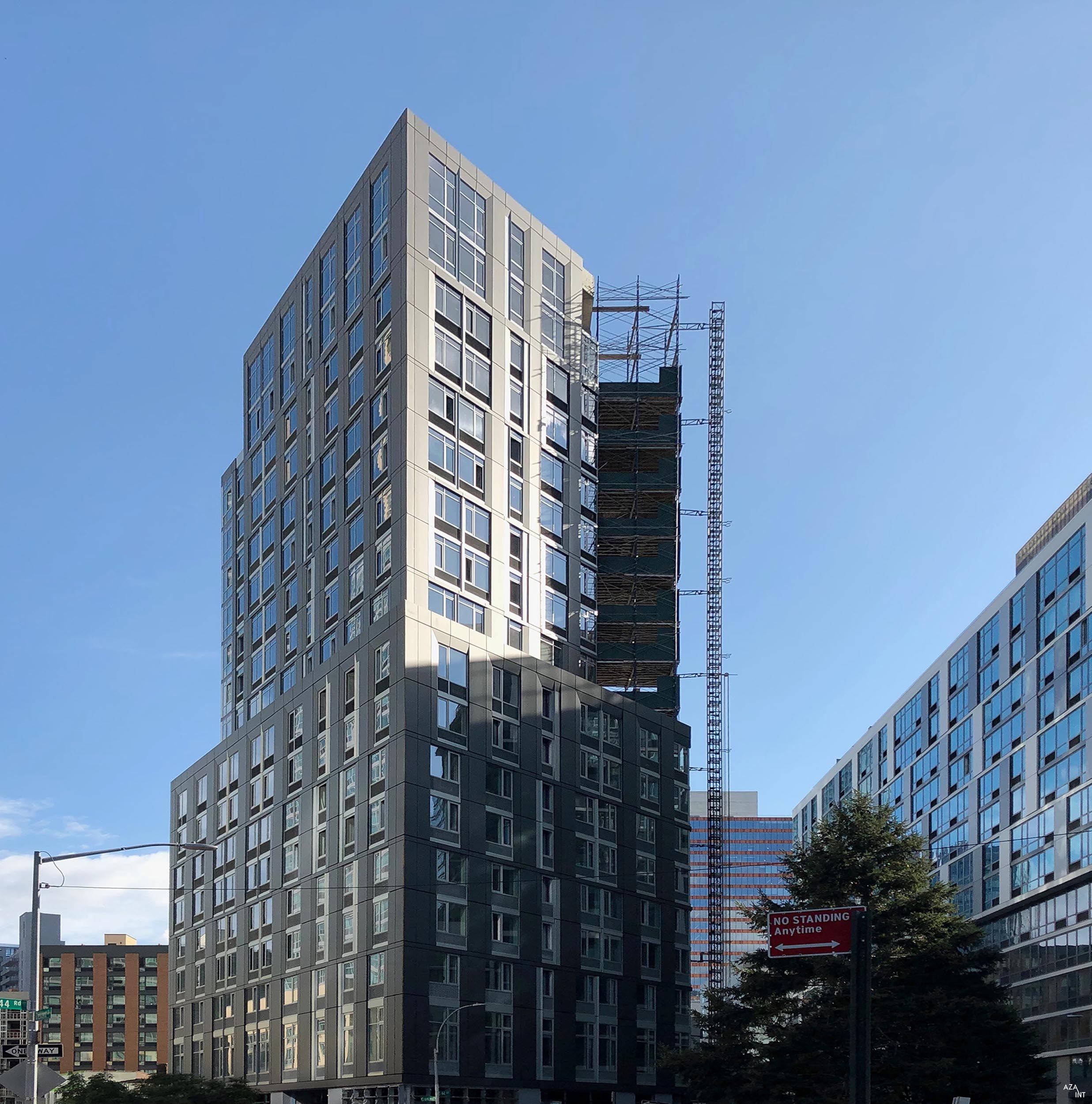 Located at 43-12 Hunter Street in Long Island City, Queens, and referred to as “The Triangle” for its peculiar wedge-shaped site, “The Cove” is an 18-story reinforced concrete structure wrapped in 68,350 Sq Ft of full curtain wall designed, engineered, and fabricated by AZA INT.