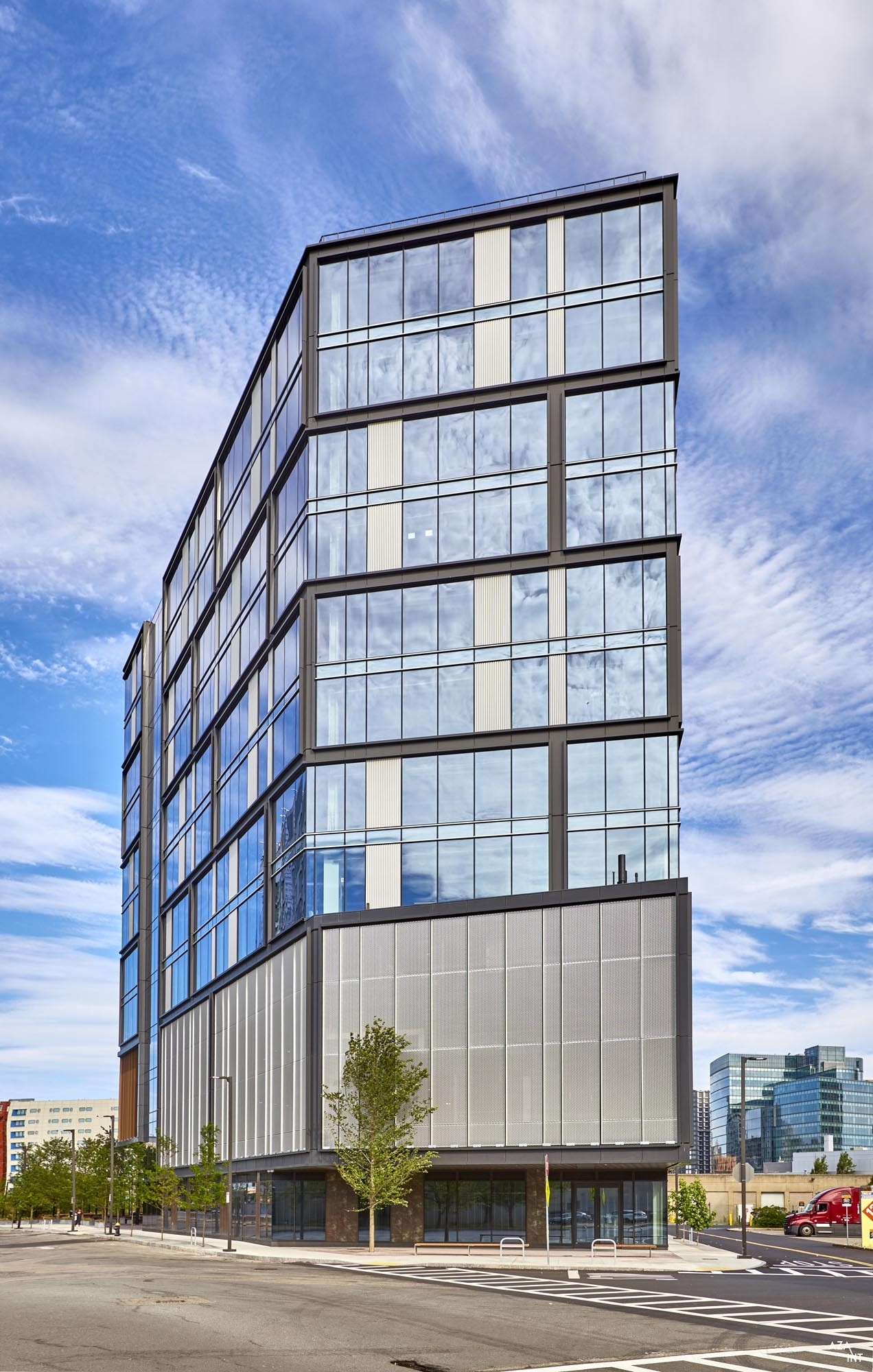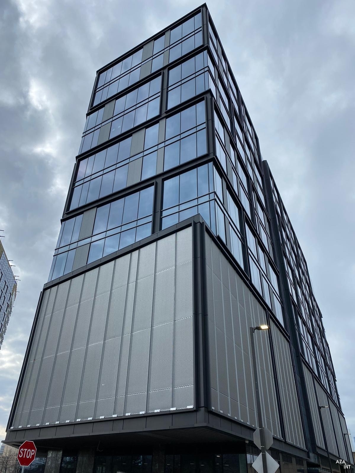 Two Drydock required the design, engineering, and construction of 69,200 Sq Ft of curtain wall facade, 9,300 Sq Ft of stick built system, and 22,300 Sq Ft of wire mesh with vertical fins.